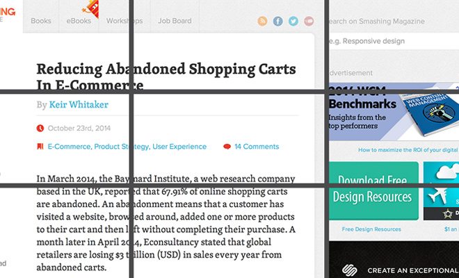 了解三分法的柵格的運用方式之后,你還需要明白更重要的一點(diǎn):三分法帶來(lái)的并非是一個(gè)無(wú)可挑剔的網(wǎng)頁(yè)設計架構,而是一個(gè)用來(lái)微調現有設計的布局測試框架。
