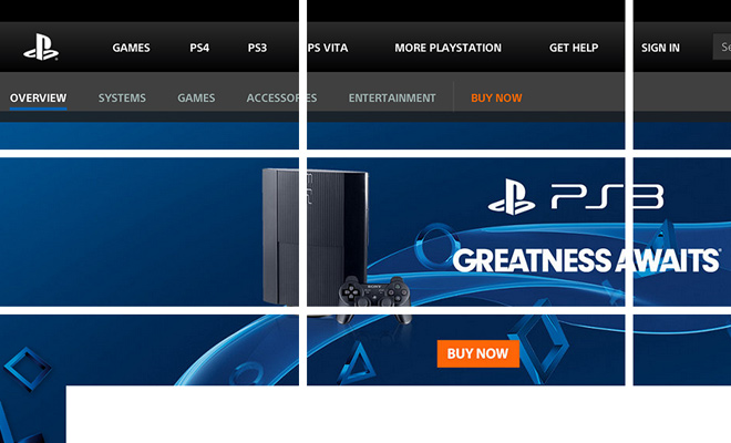 有太多的免費的柵格系統可以幫你設計網(wǎng)頁(yè),比如960GS之類(lèi)的,但是三分法的九宮格柵格系統是一個(gè)幫你微調整個(gè)網(wǎng)頁(yè)布局的,比如調整導航欄的高度,把Logo挪近一點(diǎn)或者遠一點(diǎn)。