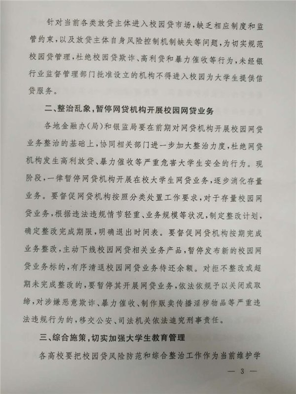 IT之家6月17日消息,近日,中國銀監會(huì )聯(lián)合教育部以及人力資源社會(huì )保障部發(fā)布了《關(guān)于進(jìn)一步加強校園貸規范管理工作的通知》(以下簡(jiǎn)稱(chēng)為《通知》)?!锻ㄖ贩Q(chēng),相關(guān)部門(mén)將進(jìn)一步加大校園貸的監管整治力度,從源頭上進(jìn)行整治亂象,防范和化解校園貸風(fēng)險,同時(shí)暫停網(wǎng)貸機構開(kāi)展校園貸業(yè)務(wù)。